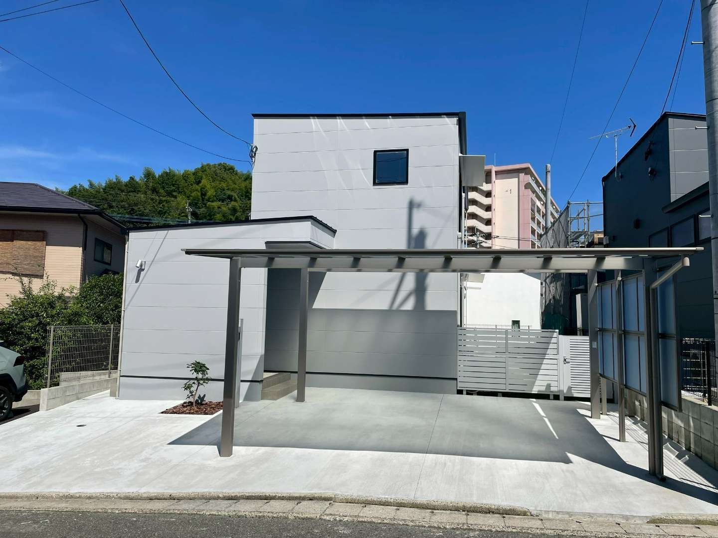 カーポートは耐久性のあるスタイリッシュなタイプを採用し、建物の外観と調和するよう設置。雨の日の車の乗り降りや紫外線からの保護に配慮しました。