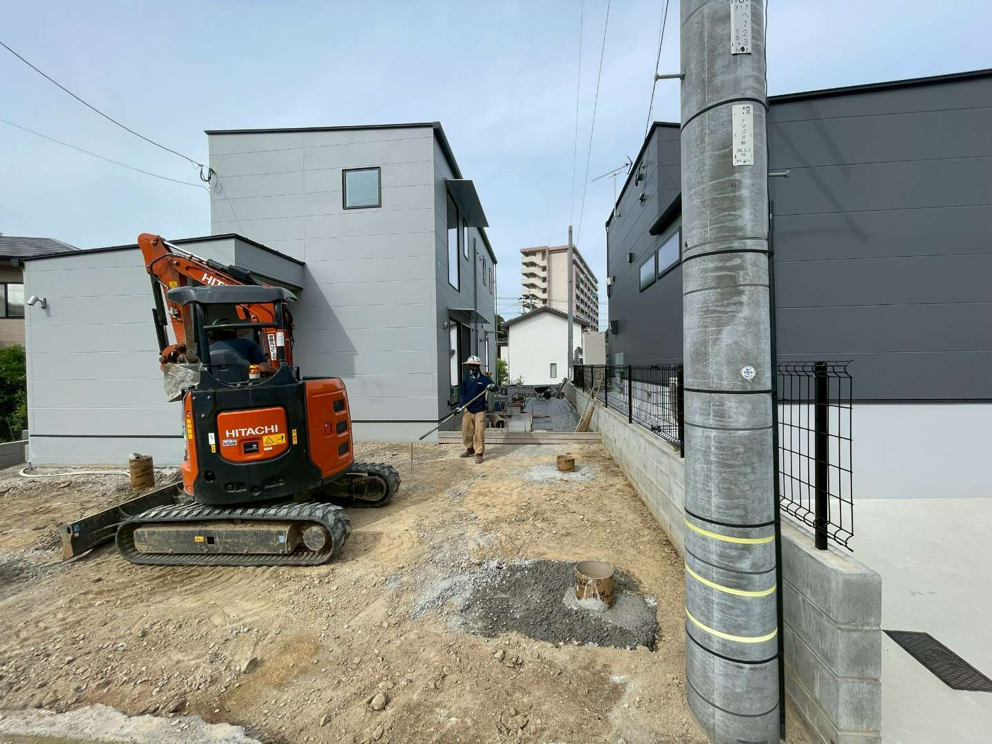 土間コンクリートは勾配や排水にも細心の注意を払い、長く安心して使っていただける仕上がりとなりました。狭小部の型枠設置や重機による掘削作業など、現場の条件に応じた丁寧な施工を徹底しています。