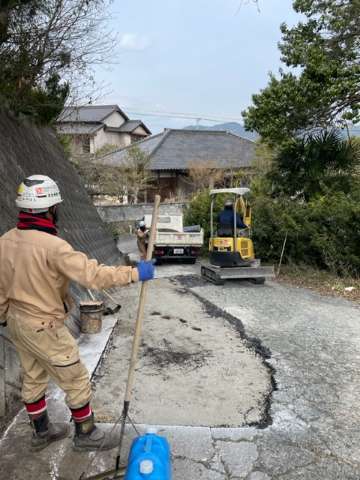 戸建て 舗装工事 個人邸坂道舗装打ち換え工事 時間の経過と共に路面に穴が開いたり、コンクリート部分が剥がれたりと、安全も確保できておらず、日々の利用が不便になっているとお客様からご相談がありました。私道となっており、市から補助なども無いため、修繕もなるべく費用を抑えて施工してほしいとのご依頼でした。安価に抑えるために近隣で施工予定だった舗装工事の日に合わせて施工することで、機械代のコストダウンと、十分な施工人数の確保ができ、契約外の既存駐車場の整備もサービスさせていただき、お客様にも大変ご満足いただけました。 竣工日 2023年3月 場所 福岡県宮若市 施工内容 個人邸坂道舗装打ち換え工事 1 / 1 前の施工事例 戸建て 外構工事 | 土間コンクリート・カーポート・庭
