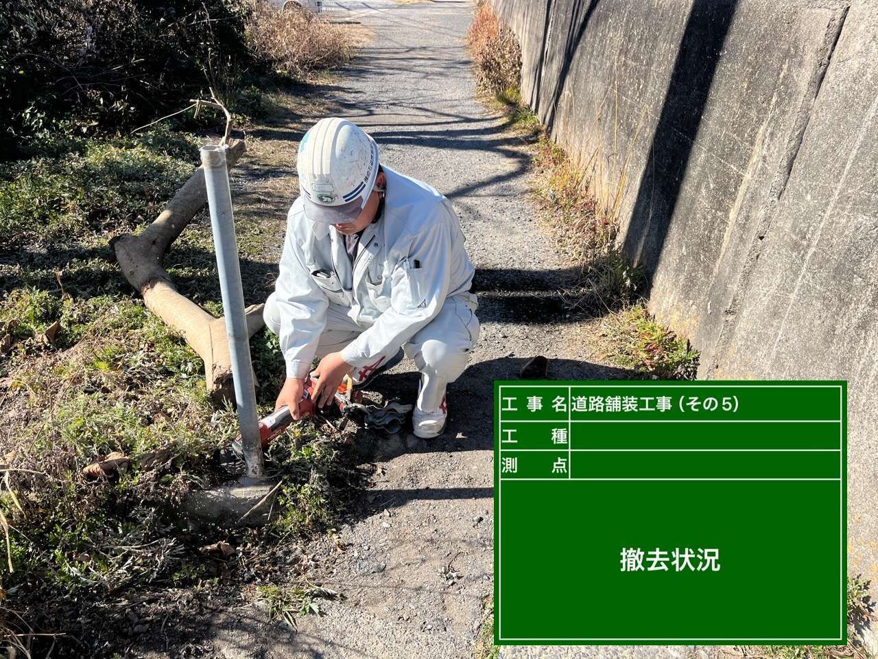 フェンス支柱を撤去し、安全に通路幅を確保する作業を行いました。