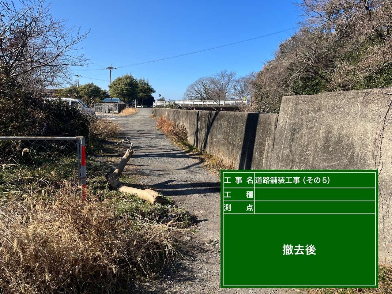 凹凸が目立ち、写真は草刈り後ですが、草も伸び飛散物もあちらこちらにある状態。